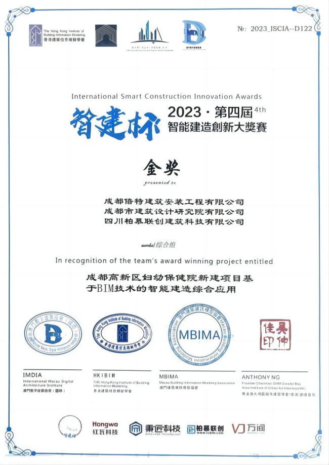 1月7日,第四屆數字設計與智能建造創(chuàng )新峰會(huì )暨第四屆“智建杯”智能建造創(chuàng )新大獎賽頒獎典禮在深圳舉行,高新發(fā)展下屬子公司成都倍特建筑安裝工程有限公司(簡(jiǎn)稱(chēng)“倍特建安”)申報項目《成都高新區婦幼保健院新建項目基于BIM技術(shù)的智能建造綜合應用》(以下簡(jiǎn)稱(chēng)“項目”)斬獲金獎。瀏覽 : 4093分享